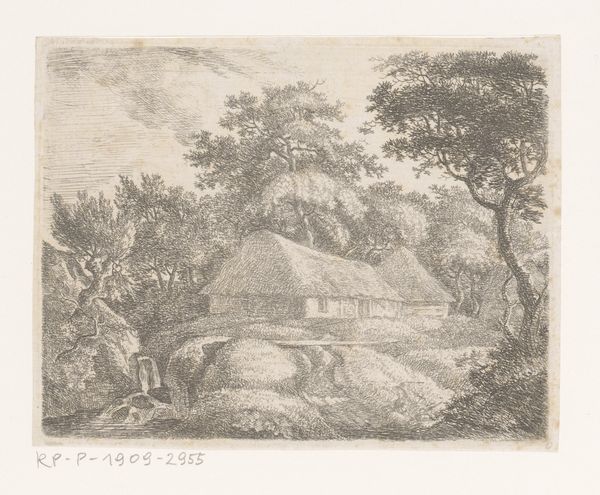 Editor: This is "Gezicht op dorp met kerk op Kisar, Zuid-Molukken," a pencil drawing by Adrianus Johannes Bik, likely created sometime between 1821 and 1829. It's a delicate sketch. The textures achieved with simple pencil strokes are quite remarkable. What draws your eye in this piece? Curator: My attention is directed toward the manipulation of perspective and light. Observe how the artist uses the varying pressure of the pencil to create depth, pulling the eye from the foreground, where details are sharply defined, into a softer, almost ethereal background. How do you see this contrast contributing to the overall structure? Editor: I hadn't thought about the intentional depth so much! I was just admiring the texture of the thatched roofs. So you are seeing this technique as contributing to the formal structure? Curator: Precisely. The subtle tonal gradations shape the visual hierarchy, leading us towards the focal point—the church—while simultaneously imbuing the work with a palpable sense of atmosphere. Editor: It’s like a stage, drawing our attention. Are there symbolic readings from such stark geometrical forms in this setting? Curator: A semiotic investigation might look into that in relation to Western church architecture contrasted with indigenous materials, perhaps. It is worth exploring. How does it affect you, as a viewer? Editor: It's like looking at the scene from memory rather than real life. Curator: Indeed. Bik masterfully directs our gaze and our understanding through expertly controlled technique. The essence, captured and meticulously rendered, offers layers that encourage continual reflection. Editor: That’s a different perspective than I first had; seeing how line and shade give structure. Curator: Analyzing those aspects allows deeper exploration into a work's meaning. I am glad to share these viewpoints.
