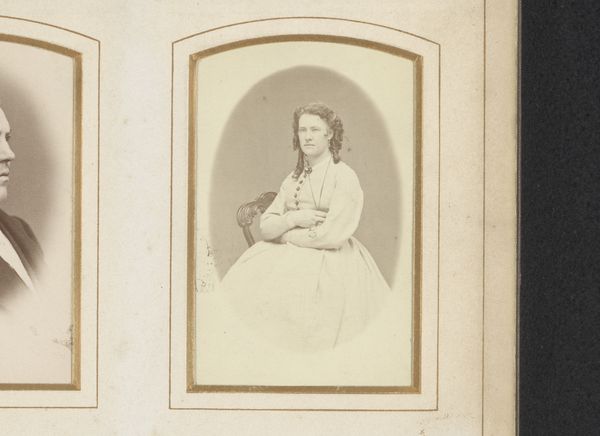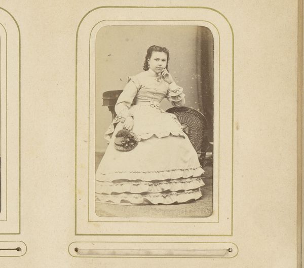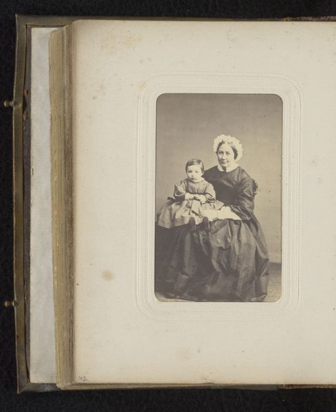 This is a portrait of a seated woman and a standing girl by Charles D'Hoy. The photograph’s composition relies on a stark contrast of form. The seated woman occupies a substantial volume, her striped dress creating a series of vertical lines that are disrupted by the fabric’s folds, while the girl, dressed in white, offers a lighter, more ethereal presence. The tonal range is carefully controlled, with D’Hoy using the varying shades to define the subjects’ features and clothing. The softness of the light contributes to a sense of intimacy, yet the formal arrangement keeps the figures at a remove. The contrast in texture is significant, between the smoothness of the girl's dress and the more complex patterns of the woman’s attire. Ultimately, this photograph is an object of careful construction where D'Hoy seems less concerned with capturing likeness and more with exploring the formal interplay of light, texture, and shape.