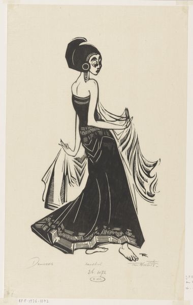 Charles Dana Gibson drew this "Woman in black evening dress" with pen and ink on paper, and there's a real immediacy to the marks, isn't there? The marks are applied without hesitation. Look at how the varying pressure of the pen creates such an interesting range of tones. The cross-hatching on her dress gives it volume and texture, while the lines on her face are more delicate, capturing her expression with such simple efficiency. See how the dress, in particular, is rendered with these confident strokes? It reminds me of the freedom of sketching, where the process is all about capturing the essence of the subject. The overall impression is dynamic and alive, as if the artist is having a conversation with the page. There's an influence here from artists like Toulouse Lautrec, particularly in the way the figure is captured with such stylish flair. In the end, drawing like this is about embracing the beauty of imperfection and celebrating the joy of mark-making.