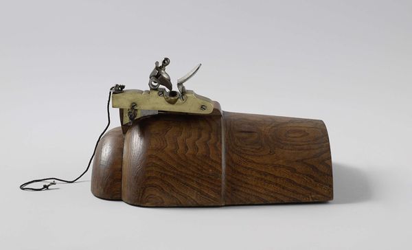 Editor: This is a Gunlock on a Dummy Breech of a 12-Pounder Cannon, created in 1836 at Rijkswerf Amsterdam. Initially, the contrast of materials and mechanical form create a kind of steampunk aesthetic. What catches your eye most about it? Curator: It's not just the steampunk vibe that hits you first; it's the whiff of history, isn't it? I find myself imagining the craftsmen, dedicated to their work, almost meditative in their precision. I see ingenuity in that metallic lever, ready to spark, even on a ‘dummy’ breech. A longing, perhaps, for an era when things were crafted with meticulous hands, not stamped out by machines. Makes you wonder, what's *our* contribution to that legacy? Editor: That’s a beautiful way to think about it. I hadn't considered that sense of human touch in contrast to the destructive potential of the cannon. It is like a beautiful artifact representing this tool for battle. What do you make of its specific cultural or historical context? Curator: I think about Amsterdam at this point, one of the European centers of craftsmanship and weapon making. Also the legacy of innovation! One wonders if the artist saw the future: our blend of destruction and beautiful creation? Editor: It’s almost as if this object encapsulates a moment in time, standing at a crossroads. I leave looking at this old object, and wondering how we think about the impact of technology, now and in the future. Curator: Precisely! It encourages one to be a little more introspective. As artists, and as people, what do we leave behind? Something beautifully made, or something to be afraid of?