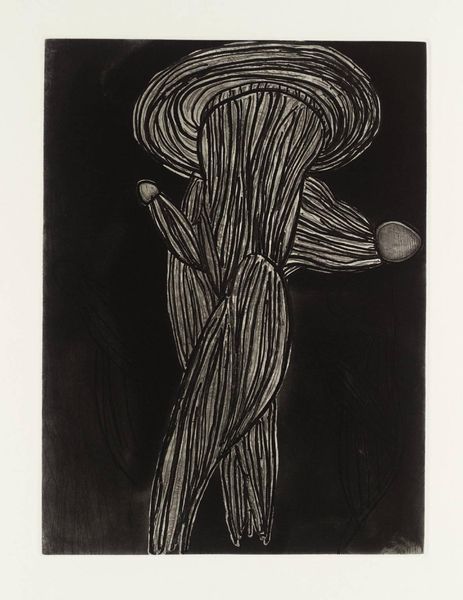 Curator: Terry Winters' "Field Note (6)" presents two enigmatic, almost biological forms. Editor: They evoke a sense of primordial life, but also feel very mediated through the artist’s hand. There's a tension between the organic and the constructed. Curator: Winters came of age in a period questioning institutional power and exploring identity through the lens of structuralism and post-structuralism. These forms resist easy categorization. Editor: It's interesting to see how the abstract shapes, with their repetitive lines, create a sense of movement within the static print. Curator: This echoes the broader theme of challenging accepted forms of representation. Winters encourages us to question what we see. Editor: Absolutely. It's a powerful reminder that art can serve as a mirror, reflecting both ourselves and the ever-shifting world around us.