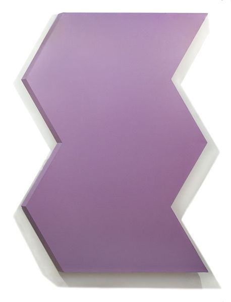 Editor: This is Ronald Davis’s "Pink Diamond," created in 1966 using acrylic paint. The shapes remind me of elongated diamonds, but their arrangement is so minimal. What strikes you most about this piece? Curator: Well, considering the era, "Pink Diamond" firmly places itself within the Hard-edge painting movement, a reaction against the perceived subjectivity of Abstract Expressionism. These artists favored precise, geometric forms and clean lines. Knowing this, how might we view Davis's choice of this precise arrangement? Editor: I see. So, the stark geometric shapes and the smooth color application weren’t just aesthetic choices, but a statement against previous artistic trends? A push for clarity, perhaps? Curator: Precisely. Also, consider the societal context. The mid-60s were a time of significant social and political upheaval, and yet we see here an artist turning toward pure, formal abstraction. What message could this formalism send? Is it a retreat, or a defiant act? Editor: That's fascinating! Maybe it's about creating order in a chaotic world, focusing on the concrete and tangible when everything else felt unstable? Curator: A strong reading. And what about the title, "Pink Diamond"? Diamonds often carry associations of wealth, power, and even exploitation, especially in relation to colonialism. Is Davis commenting on these power structures through abstraction? Editor: I never considered that! Seeing the painting as a commentary, rather than just a composition, completely changes my perspective. It's like he’s using these simple shapes to hint at larger societal issues. Curator: Exactly. It’s this interplay between the visual language and the sociopolitical environment that makes “Pink Diamond” such a compelling piece, opening avenues of reflection. Editor: I definitely learned so much and never would have come to that on my own. Curator: This helps to solidify that the reception and perception of any art are deeply shaped by the historical context.