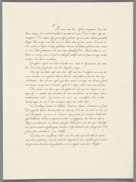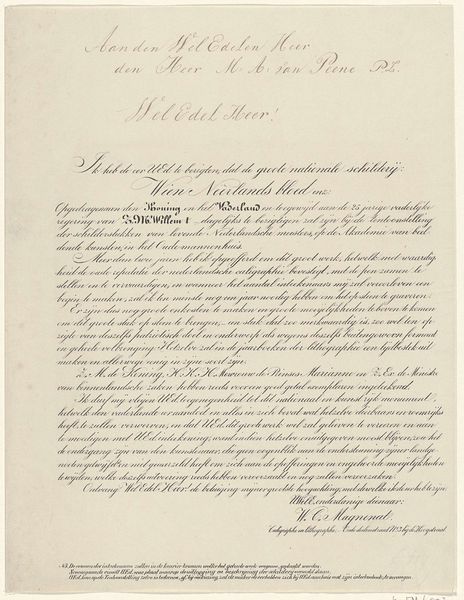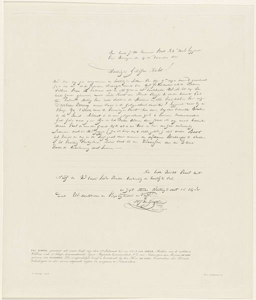 Curator: Here we have a drawing entitled, "Description of the Shipwreck of the Steamboat Willem I, 1837". Dating back to 1837, it's rendered in ink on paper. What's your first impression? Editor: Stark. It’s dominated by text, like an official report, and the script seems… distant. Gives off a detached vibe, despite the inherent drama of a shipwreck. Curator: Indeed. What is interesting is that we should consider this drawing not just as art, but also a piece of material culture deeply entrenched in the production and distribution of information during that era. Ink, paper, script—they all speak to the labor involved in creating and disseminating knowledge. The quality of the paper, the precision of the script, reflect colonial standards of administration. Editor: I see that, and immediately think about the broader context of colonialism, Dutch maritime history and this specific disaster, no doubt profoundly affected the communities tied to this ship, raising questions about risk, power and the human cost of exploration. Who were the passengers? What was the cargo? Curator: Precisely. How does the visual and textual description intersect, but also potentially conflict, with the experiences of those who endured it? How do we reconcile the seeming detachment in presentation with what must have been utter chaos for those involved? Perhaps this very austerity functions to exert power, an authority trying to restore calm after a debacle. Editor: That resonates. Looking closer at the title… “Description of the Shipwrecked... of the Steamboat…” There’s a subtle emphasis there, perhaps intending to deflect from any larger questions about who or what may have been responsible. How might survivors understand it versus shareholders of the shipping company? Curator: Food for thought. It underlines how something created to relay facts always possesses many layers, affected by its production and cultural settings. Editor: And reminds us that "objective" accounts often mask far more than they reveal. There's power, here, in the act of deciding which voices will be immortalized through description.