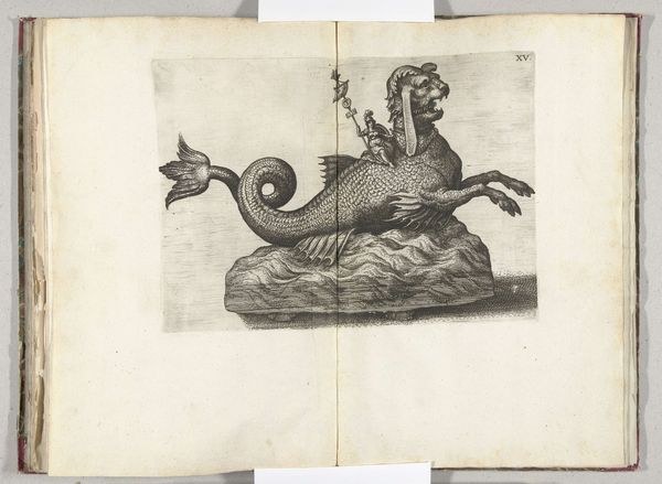This print presents us with a decorative scene dominated by a dragon-like creature intertwined with a tree, accompanied by birds and beavers. Dragons, these fantastic hybrid creatures, symbolize chaos and untamed nature, yet also power and wisdom across many cultures. Notice how the creature merges seamlessly with the tree. This reminds us of ancient myths where trees were sacred, living beings connecting the earthly and divine realms. We see echoes of this in the Tree of Life, a motif present from ancient Mesopotamia to Norse mythology. Consider the emotional weight of such imagery. The dragon, a symbol of primal fear and awe, is softened here, almost tamed by its integration with nature. It evokes the human desire to reconcile with the natural world, to find harmony between our inner chaos and the serenity of nature. This symbol's journey is not linear but cyclical. The dragon, once a fearsome beast, re-emerges here as part of an ornamental design, reflecting our ever-evolving relationship with symbols of power and the subconscious forces they represent.