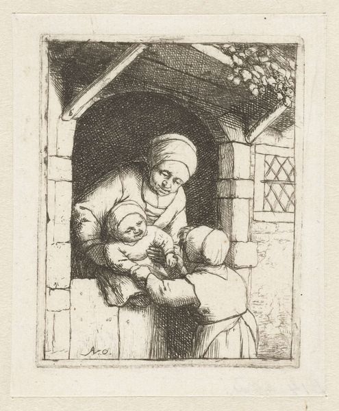Editor: This is Albrecht Altdorfer’s “Samson and Delilah,” an etching from around 1530. There's such a raw, almost brutal feel to this scene, emphasized by the stark lines and the claustrophobic composition. What historical factors might have shaped Altdorfer's interpretation? Curator: Considering the time period, the early 16th century, it’s worth remembering the Reformation was gaining momentum. Religious imagery was fraught, becoming increasingly politicized and connected to the reformist cause. Think about the accessibility of prints; they circulated widely, delivering moral messages or even propaganda. Editor: So, do you see this as having a specific social commentary beyond the immediate Biblical narrative? Curator: Absolutely. Altdorfer would be using an established biblical story to perhaps comment on the anxieties around female agency or the dangers of unchecked power. Look at the depiction of Delilah—notice anything striking in comparison to other depictions? Is she glamorous and seductive as might expect? Editor: Not really. She seems almost... ordinary. Perhaps making her betrayal that much more unsettling. Curator: Exactly. It underscores the idea that betrayal can come from unexpected sources, highlighting societal anxieties present at the time, such as shifting power structures within religious institutions. Do you find a certain moral message being explicitly presented? Editor: It’s interesting to consider the social context. It changes how you look at Delilah; she's no longer a one-dimensional seductress, and that the print itself functioned as a piece of accessible rhetoric. Curator: Precisely. The public role of art at this time was undeniably significant, it really prompts us to consider the political implications inherent within visual representation.