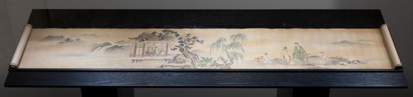 Dimensions: Painting: 94.3 × 32.4 cm (37 1/8 × 12 3/4 in.); 177.8 × 42.6 cm (with mounting) (70 × 16 3/4 in.);177.8 × 46.7 cm (with knobs) (70 × 18 3/8 in.)