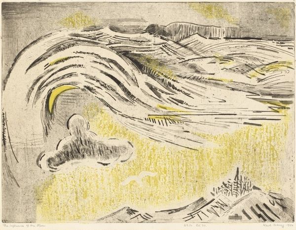 Curator: Nandalal Bose created this evocative image, "Untitled (Two Serpents in a River)," its dimensions roughly 11 by 15 inches. What strikes you first? Editor: The starkness of the composition, the almost monochrome palette, it evokes a sense of quiet foreboding, a world stripped bare. Curator: Given Bose's engagement with Indian nationalism and his time at Santiniketan, one could argue the serpents represent both danger and transformative energy within the landscape, reflecting the political climate of pre-independence India. Editor: I see that. The serpents also embody a kind of primal femininity, perhaps mirroring the complex role of women in the independence movement, navigating traditional expectations and revolutionary ideals. Curator: The simplified forms, reminiscent of traditional ink wash painting, allowed Bose to connect with a wider audience, democratizing art during a period of intense social change. Editor: It's fascinating how he merges art traditions with urgent social commentary. This piece really resonates today, speaking to the power dynamics within movements for liberation. Curator: Indeed, it's a potent reminder that art isn't created in a vacuum. Editor: A compelling piece that lingers in the mind long after viewing.