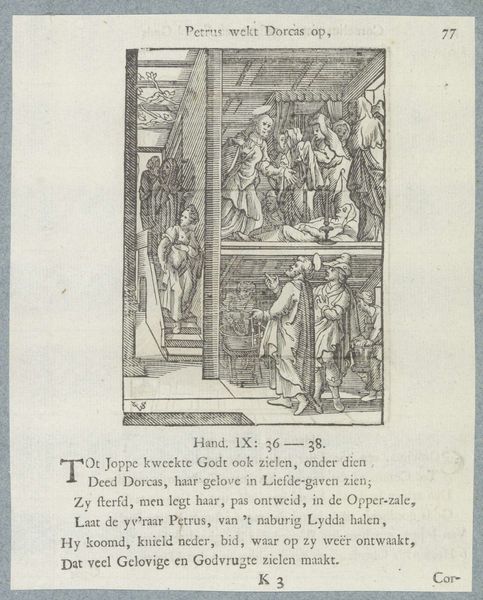 Christoffel van Sichem II created this engraving, "Peter healing the sick with his shadow," in the early 17th century. The work depicts a scene from the Acts of the Apostles, set against the backdrop of a detailed cityscape. Consider the historical context: Sichem, living in a time of religious reformation and conflict, uses his art to visualize biblical stories. This particular scene carries themes of faith, healing, and divine power, reflecting the period's deep spiritual concerns. Sichem’s detailed rendering of bodies, some contorted by illness and others reaching out in hope, evokes a sense of shared humanity. The faces in the crowd express a range of emotions, from desperation to awe, mirroring the emotional landscape of a society grappling with questions of belief and salvation. This piece, beyond its religious narrative, invites us to reflect on the enduring human quest for healing and meaning.