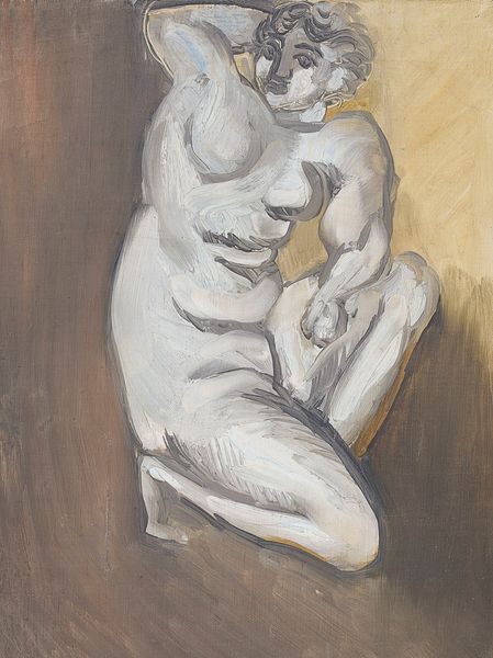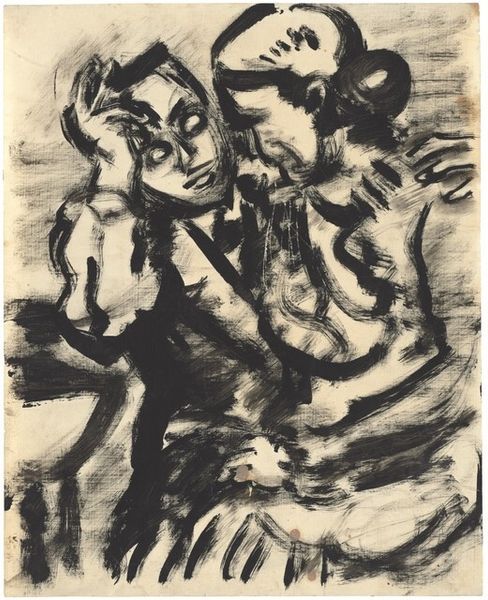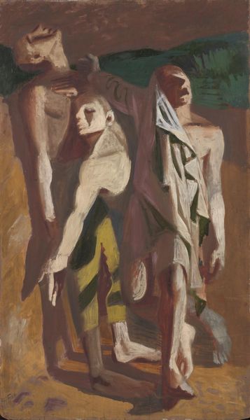 Editor: "The Ragged One," a 1944 charcoal drawing by Rico Lebrun. Wow, this piece feels so heavy, you know? Like the weight of the world is pressing down on that figure. The hunched posture, the shrouded head… what do you see when you look at it? Curator: Oh, honey, I see a mirror. Lebrun wasn't just drawing a ragged person, but tapping into something universal – that raw, exposed vulnerability we all try to hide. Think of it: the Second World War was raging when he made this. Do you suppose that maybe, through the deeply shadowed, tortured figure he was showing us war through the scope of humanity? It makes me think of Picasso’s Guernica too, what do you reckon? Editor: Absolutely! It does have a similar raw emotion, a primal scream captured in charcoal. The draped cloth—is it hiding or protecting? I am undecided if Lebrun saw this figure as vulnerable or guarded? Curator: That's the beauty of it, isn’t it? That cloth—it's both a shield and a surrender. The figure isn't confronting us, they're turned inward, consumed by something deeply personal and, yet, agonizingly shared with the world. He allows for paradox - very few things exist exclusively in the realms of simply “good” or simply “bad”. Don’t you feel this has application far outside a response to war? Editor: Definitely, it makes me think about contemporary issues of homelessness, mental health…that sense of being unseen and burdened. Curator: Right? It’s almost like Lebrun tossed us this wounded fragment of humanity and whispered, "Here, hold this." We should be humbled. Editor: So powerful – I see it now, a mirror reflecting humanity's struggles through time.