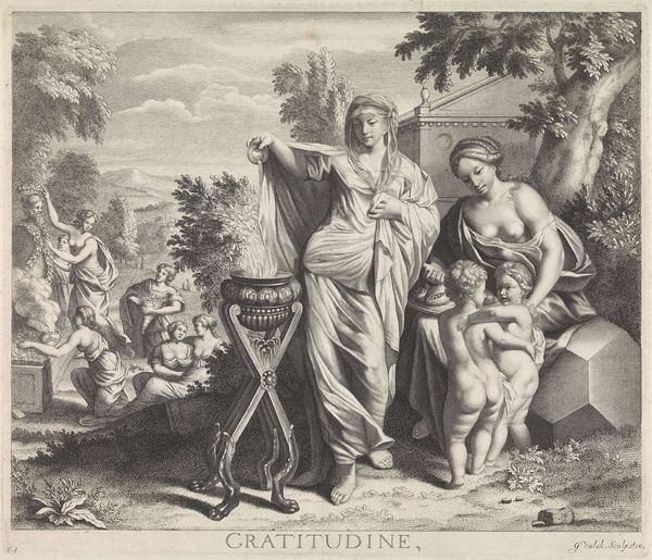 This engraving, made by Daniel Nikolaus Chodowiecki, depicts Minerva, the Roman goddess of wisdom and strategic warfare, instructing a young military genius. Note the prominent globe, a symbol of earthly dominion, overlaid with maps indicating military strategy. Minerva's presence signifies that warfare should be guided by intellect and reason, not just brute force. Her hand rests assuringly on the student's shoulder. The motif of the wise mentor guiding a youthful figure appears in numerous guises throughout history, from ancient depictions of Socrates and his students, to Virgil guiding Dante. The flame on the young man's head, a classical attribute for genius, also represents inspiration. This imagery resonates with our collective memory of seeking knowledge and guidance. The emotional power embedded in this scene lies in its evocation of the timeless human quest for wisdom, a powerful force that engages us on a deep, subconscious level. The goddess, a figure in contrapposto, adds a sense of dynamism and movement that echoes in the student's alert pose. The image serves as a reminder of how symbols persist, evolve, and acquire new resonance across time.