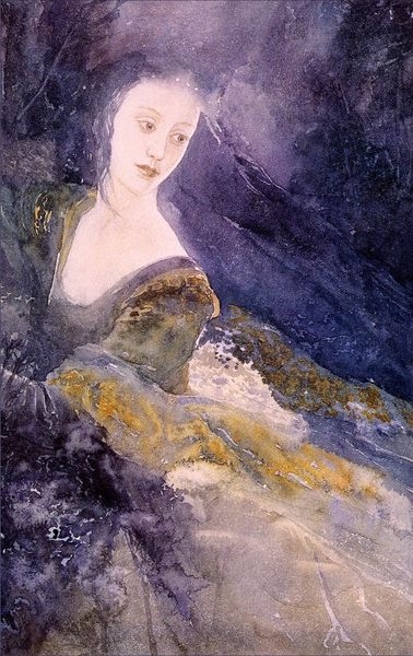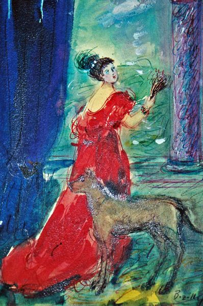 Curator: Here we see Gustave Moreau's "Salome," painted in 1875. It's currently held at the Musée National Gustave Moreau in Paris. Editor: My immediate impression is one of lightness, even ethereality. The watercolor medium lends itself to this fleeting, dreamlike quality. I see quick brushstrokes. Curator: Absolutely. Moreau uses watercolor to wonderful effect, allowing the translucent washes to build a sense of both opulence and melancholy. Note how Salome’s figure seems to almost emerge from the surrounding space. What symbolic meanings are captured here? Editor: Thinking about materials and making, it's interesting to consider watercolor in the context of high art. Moreau, of course, was associated with Symbolism, but his work, in terms of material application, sits in a space separate from academic traditions of the time. Curator: It challenges a fixed understanding, doesn't it? Looking closely, we can see echoes of the femme fatale archetype in Salome: beauty and danger inextricably linked. The dark accents around her head and clothing symbolize an internalized corruption or tragic predetermination. Editor: Exactly! A visual construction born out of pigment suspended in water—this is how we give weight to loaded subject matter. How easily we can dismiss watercolors! Consider the social associations connected to this supposedly delicate material. Curator: But this medium doesn't at all limit Moreau’s capability. If anything, it adds an eerie psychological dimension. It almost feels as if the figure is vanishing before our eyes. What does that say about the narrative—about its lasting effects or its eventual erasure? Editor: And isn’t that connected to its allure and power? Its disposability! Like labor, the materiality isn’t necessarily supposed to “last.” Here we have an example of transient matter used to construct and depict long-lasting symbolism. The artwork exists through, in spite of, its ephemerality. Curator: Indeed. Through Salome’s presence—however ephemeral or lasting—we also glimpse the ongoing appeal of history paintings, as a space to interrogate identity and myth, across all sorts of divisions, temporal, class-based, or otherwise. Editor: Considering all of this, Moreau's "Salome" becomes a study in both the beauty and potential deceit of fleeting surfaces.