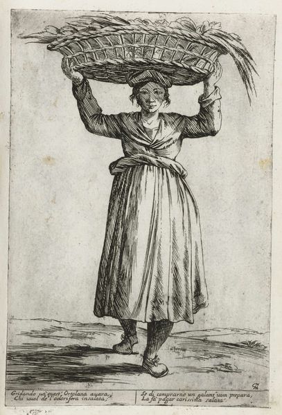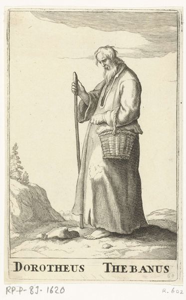 This drawing of a woman with a basket on her back was created by Pieter Bartholomeusz. Barbiers. The composition is dominated by the figure of a woman, rendered with delicate lines and subtle gradations of tone, standing in what appears to be a field. The structural arrangement emphasizes the verticality of the woman, yet it is softened by the curve of the basket on her back and the tilt of her head. The textures in the drawing, from the woven basket to the folds in the woman’s clothing, are meticulously described, indicating Barbiers's mastery of the medium and close attention to detail. Her gaze meets the viewer's directly. Consider how Barbiers destabilizes conventional portraiture by situating his subject in a seemingly everyday context. Here, the drawing invites a deeper consideration of the interplay between individual representation and social role, challenging us to look beyond the surface and question the values and categories that define our perception.