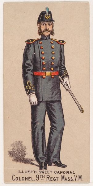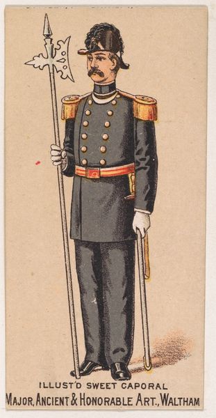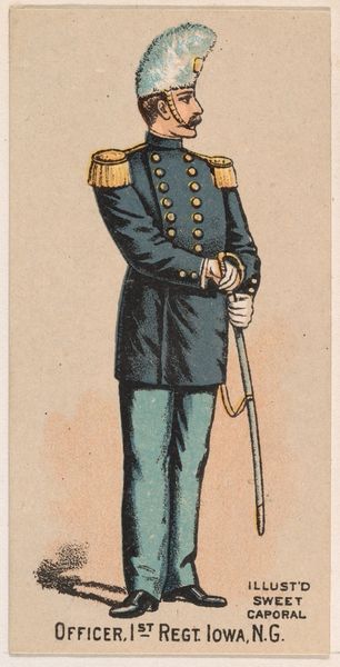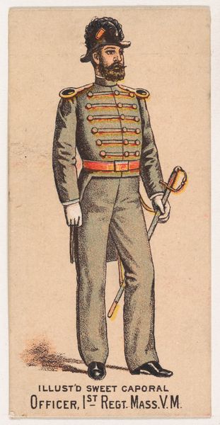This chromolithograph, produced by Kinney Brothers Tobacco Company around 1888, depicts a soldier from the 6th Regiment of the Massachusetts Volunteer Militia. Note the elaborate uniform with its meticulously rendered details. The soldier’s rifle, held diagonally across his body, is a symbol of martial readiness, a gesture that echoes through centuries of art, from classical depictions of Roman soldiers to Renaissance portrayals of military leaders. Consider, too, the colors and the symmetry of the uniform. These elements project an aura of order and control, designed to inspire confidence. This motif, the disciplined warrior, resurfaces time and again in our collective memory, molded by cultural and psychological needs. From ancient friezes to modern advertisements, the image of the soldier taps into primal emotions, evoking both the security of protection and the anxiety of conflict. The soldier, therefore, is not just a figure but a vessel of deep, recurring cultural meanings.