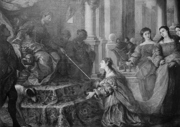 Curator: There’s something about the somber quality that's just pulling me into this image. What a wonderfully muted scene. Editor: Indeed. Here we have Johan Mandelberg's, "Hermes befaler Kalypso at frigive Odysseus," or, "Hermes Commands Calypso to Release Odysseus." The date ascribed is 1745-1786. It is presently housed at the Statens Museum for Kunst. Curator: Baroque with almost photographic qualities, wouldn't you agree? The texture... and this being a painting? Astonishing! I can practically smell the canvas, it smells of aged wood. Editor: Notice the production value itself, seemingly straightforward materials transformed into an exercise of symbolic capital within the narrative-art and historical painting tradition. It's a dance of labor, prestige, and myth, spun into form. And don't let your senses fool you too much, I hope there's a nice thick glass that separates your nose from it! Curator: It's a very dominating black and white theme. Everything exists in this grey area which makes the topic matter feel somber. But Hermes reclining there so nonchalantly! It adds a weird twist, a contemporary edge, maybe even a bit cynical? Is that a cloud he's sitting on? Editor: Indeed. Mandelberg utilized the pictorial strategies of the Baroque to underscore the central narratives within Homer’s *Odyssey*. Consider how the means of distribution, primarily through aristocratic circles, cemented both its symbolic and tangible worth. Each brushstroke, each carefully considered pigment, serves a function, both within the artistic economy of the time and the narrative itself. How consumption intertwines itself. Curator: That's why it's hanging in this space right? Art in the context of consumption... But, speaking purely subjectively for a moment—Hermes just looks so bored. Doesn't he? Editor: Ha! Precisely. Mandelberg isn't merely illustrating; he's staging power dynamics through composition and carefully controlled tonality. I mean...just think about it! It reflects our modern engagement, and what we assign as critical to our spaces and being in community together. Curator: Yes...so powerful still. Editor: A somber and enduring creation.