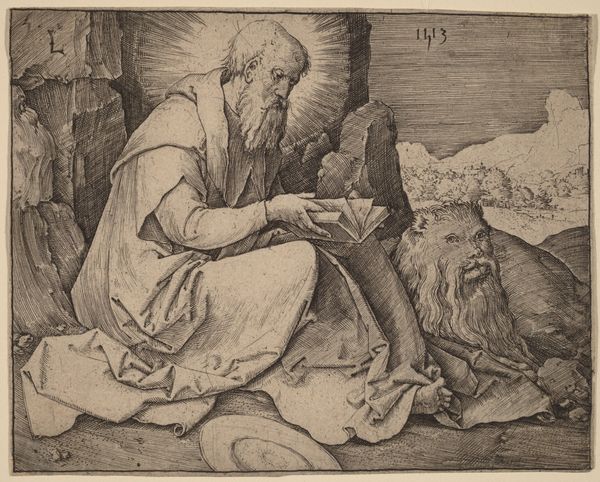 Anton Joseph von Prenner created this print of a saint seated at a table in the 18th century, as part of a portfolio reproducing paintings from Vienna's Imperial Gallery. The image depicts a contemplative, perhaps melancholic, saint, resting his head in his hand, which in turn rests upon a skull. Books are at his side, symbols of knowledge and scripture, while the skull is a stark memento mori. Death is always with us. The emotional weight of the scene speaks to the religious and philosophical concerns of the time, reflecting on mortality and the search for meaning. In the context of the 18th century, with its rigid social hierarchies and religious norms, images of saints served to reinforce societal values and religious devotion. Yet, there is a somber quality here. The saint's pensive posture and the prominent skull invite us to consider the saint's internal world, and perhaps question the very certainties that society held dear. This print is a meditation on faith, knowledge, and the human condition.