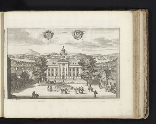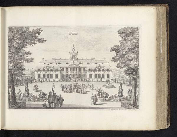 Willem Swidde made this print of Slot Karlberg in the late 17th century in the Netherlands. It gives us insight into the cultural values and power structures of that time. The crisp lines and meticulous detail emphasize the imposing architecture and orderly gardens. This is typical of the period. Consider how the depiction of Karlberg Palace serves not just as a portrait of a building, but as a statement about Swedish power and order. The figures in the foreground seem to be arranged in a formal procession, perhaps members of the court or visiting dignitaries. To understand this image better, we need to delve into the history of Sweden during this period, looking at its relationship with other European powers, its internal social hierarchy, and the role of the monarchy. Through careful study, we can better understand the complex interplay between art, power, and society in the 17th century.