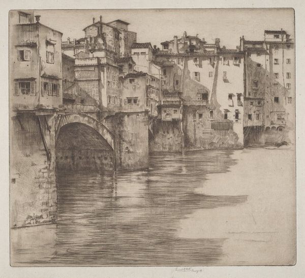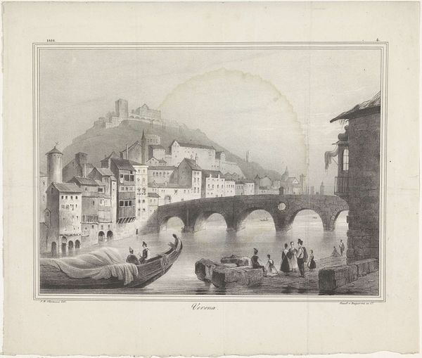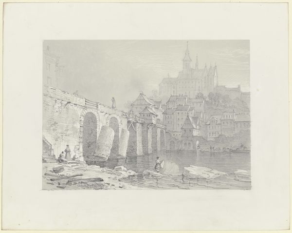 Hubert Clerget composed "Zicht op Limoges aan de Vienne" using graphite in subtle tones of gray to depict a panoramic view of Limoges. The composition is structured around the horizontal axis of the Vienne River, dividing the scene into reflective depths below and architectural heights above. This evokes a feeling of tranquil observation, inviting you to explore the visual interplay of light and shadow across the urban landscape. The artist's delicate linework meticulously captures the texture of buildings and the gentle undulation of water. The arches of the bridge serve as rhythmic intervals, framing perspectives while the grazing cattle introduce a pastoral element. The composition is not merely representational, it's an arrangement that subtly destabilizes conventional landscape art by integrating industrial elements into the natural setting. Note how Clerget uses this formal contrast to explore the dialogue between nature and urbanity, challenging viewers to consider the evolving relationship between the two. The detailed execution and thoughtful arrangement suggest a deeper meditation on progress, and how the artist subtly layers commentary into an otherwise serene vista.