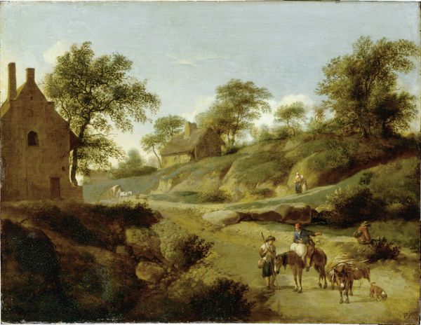 Jean-Baptiste Oudry made "Landscape with Water Mill" using oil paint on canvas, a technique mastered in the eighteenth century. But let's consider the subject of this painting – a mill, a place where grain is ground into flour. It's a subtle nod to the economic engine of the time, and how labor was organized around it. Oudry captures the earthy tones of the mill's wooden structure, rendered in rich detail, reminding us of the labor-intensive processes that sustain society. Look closely, and you'll see the texture of the thatch roof, the rough-hewn logs, the slow turning of the wheel – all signs of hard work. This wasn't merely a pretty picture; it's a meditation on the relationship between nature, labor, and society. Oudry elevates the ordinary, prompting us to reflect on the intricate dance between human effort and natural resources, blurring the lines between fine art and the everyday.