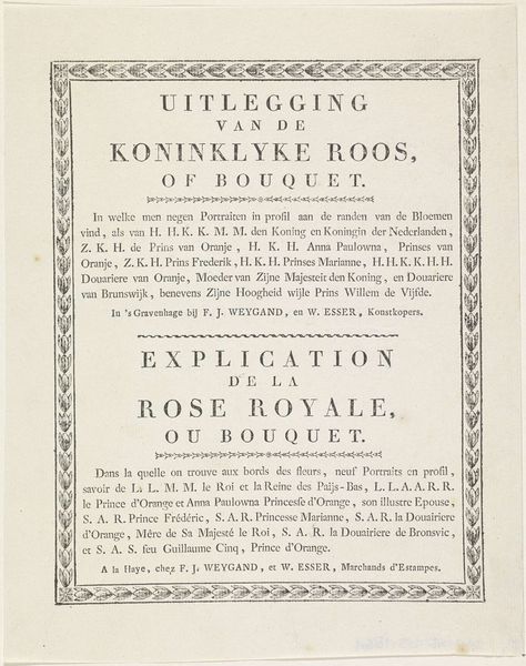 Editor: Here we have "Tekstbladen bij en de platen van het praalbed van prins Willem IV, 1751," made in 1752 by Jan Punt. It's a print on paper, using typography and engraving. It’s striking how much text there is. It's essentially an announcement, but it’s made like a work of art. What’s your take on this piece? Curator: It's fascinating how the print functions as both historical record and political statement. Consider the socio-political context. Willem IV's death created a power vacuum, and prints like these were carefully managed to shape public perception. Editor: So it’s less about mourning and more about solidifying the image of the House of Orange? Curator: Exactly. Notice the language: "Doorluchtige Hoogheid" – "Serene Highness". These weren't neutral terms. They reinforced status and legitimacy. Jan Punt is not just an artist; he's participating in a calculated projection of power, blessed with state privilege, to propagate images controlled by those in power. How might the average citizen at the time have received this? Editor: I imagine with a mix of respect and perhaps a bit of skepticism. Did people truly believe all the glorifying language, or did they see it as propaganda? Curator: That’s precisely the question. And the fact that this image was mass-produced meant it was intended to saturate the public sphere. Museums and galleries contribute to the perception, and historical interpretation, by placing works like these on view, prompting dialogue around visual communication, power, and reception. What have you learned from this closer look? Editor: It’s really driven home how even seemingly straightforward commemorative images are embedded in layers of political messaging. It’s a great example of art serving a specific socio-political function. Curator: And, conversely, how socio-political considerations define art making and visual communication, shaping production and reception.