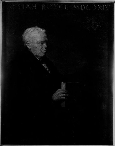 Editor: This is a portrait of Henry Bromfield Rogers, painted by Marie Danforth Page, after Sarah Wyman Whitman. It's striking how the figure emerges from such deep shadow. What do you see in this piece? Curator: It whispers of the quiet dignity, perhaps even a touch of melancholy, don't you think? The artist really captures something of the sitter's inner world, using light to carve out his features from the darkness. It's almost theatrical, like a spotlight on a stage. How does the dark background affect your viewing? Editor: It makes him seem very isolated, thoughtful. Like he's carrying a lot of history with him. I hadn't really thought of the staging aspect before. Curator: Exactly! And that sense of history connects us, too, to past ways of seeing. It’s funny how a face from so long ago can still spark recognition.