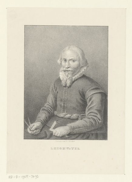 Curator: Today we’re looking at "Portret van een onbekende man met plooikraag"—or "Portrait of an Unknown Man with a Millstone Collar." It’s an engraving done sometime between 1873 and 1909 by Florent Brant. Editor: My first impression is that the work feels both rigid and softened somehow. The man’s dark jacket and severe expression contrast so strongly with the ruffled delicacy of the collar. There’s tension in that juxtaposition. Curator: Exactly. Note how Brant employs the engraving technique. The meticulously etched lines define the form, constructing volume and texture with remarkable precision. Observe, too, how the stippling softens the light across his brow, playing against the crispness of the collar’s spiraling edges. Editor: Which can speak to constructed power during the Renaissance. I am struck by the contrast between this unknown man’s imposing posture, reflective of social status, and the anonymity that history has imposed upon him. Was he complicit within systems of power, and what does it mean to have that authority erased? Curator: We can analyze the semiotic components of the portrait; the ruff collar acts almost as a halo, and speaks volumes. And note how Brant handles light—there's a masterful gradation moving from face to collar, creating an almost tangible depth. Editor: Thinking about the act of representation itself, particularly in the 19th century when this print was made…Who chose to commemorate this historical figure, and why? We might also want to explore the tradition of portraiture within colonial legacies—especially concerning power imbalances related to who gets to be seen and remembered. Curator: It’s interesting you bring that up because when we break it down formally, the engraving operates on multiple layers; it is simultaneously a flat plane and a deep space. This invites us to question our understanding of reality. Editor: Reflecting on this "unknown man," I’m reminded that archives are never neutral, always selective. This piece encourages critical engagement with the narratives of identity that the past produces—narratives in which not everyone has equal say. Curator: A wonderfully incisive remark! I find that, even at the formal level, this print creates questions more readily than it answers them.