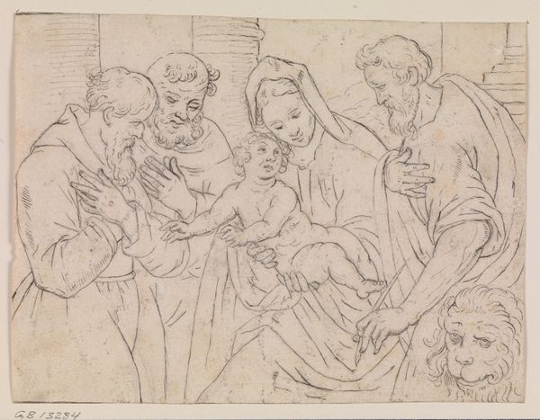 This drawing depicts the mourning figures and soldiers beneath the cross. The swooning Virgin, surrounded by sympathetic women, is the central motif, a poignant symbol of maternal grief. This specific iconography, known as the "Descent from the Cross," echoes across time. The Virgin's collapse is reminiscent of ancient depictions of mourning goddesses, figures of profound sorrow. The motif transcends cultures, reappearing in Renaissance paintings and even modern photography, each iteration imbued with the weight of human suffering. Consider the gesture of the supporting women: their embrace, a universal symbol of comfort. We see it mirrored in countless images of loss, from antiquity to contemporary photojournalism. This act of solace taps into a collective memory, a shared understanding of empathy. It triggers subconscious emotions that connect viewers across centuries, reminding us of the cyclical nature of grief and compassion. The image resonates with the enduring human need for connection in the face of death.