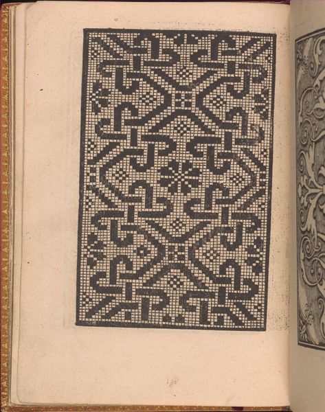 Curator: I find myself drawn into this fascinating page from "Schön newes Modelbuch", or "Beautiful New Pattern Book," created in 1608. It is a printed engraving showcasing different textile and embroidery patterns. Editor: The contrast immediately grabs me. The stark black ink against the aged paper gives the designs a sense of gravity. Almost a melancholic beauty, evoking ideas around craft labor as being black and white, hard work. Curator: Absolutely, and let’s contextualize that. Pattern books like this weren't just about aesthetics. They were crucial for disseminating design and technique across geographical and social boundaries. Think of it as a silent language shared amongst artisans and merchants of the Renaissance. It has obvious class dimensions here as well, dictating design access across lines of power. Editor: The geometric shapes feel so carefully considered, with a symbolic weight carried over from other cultures into the needlework of the day. Curator: Precisely! The patterns presented were often adapted and reinterpreted by local makers, telling a story of cultural exchange and hybridity. These shapes aren't isolated artistic expressions; they become integral parts of everyday life, embellishing clothing, linens, and decorative objects across class and cultural status. Editor: I also see echoes of other geometric traditions. We know, historically, artisans from different regions and religious backgrounds would migrate to or live as religious refugees within other nations—carrying traditions of, say, arabesque tiles to, say, needlepoint. These patterns must hold memories of that cross pollination. Curator: Indeed. What at first glance seems purely ornamental then reveals complex layers of economic, social, and personal history, allowing us to imagine the lives and hands that translated them into tangible works of art. In this way, patternmaking and distribution becomes its own statement about material access. Editor: That's what resonates with me. The engraving hints at the journey of ideas through images, offering glimpses into how cultural memory evolves. The geometric imagery, from antiquity to present use, acts as a persistent thread connecting people across time. Curator: Reflecting on the legacy of this engraving, I now understand why a closer look allows us to examine art and history in tandem to unpack stories of access and inequality in craft. Editor: For me, recognizing this piece encourages thoughtful attention toward the symbology within the every-day art objects that make up our lives, both now and across centuries.