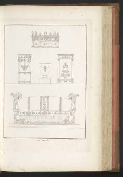 This page of furniture designs was created by Charles Pierre Joseph Normand around the turn of the 19th century. Observe how the artist has adorned even the most functional objects with a rich panoply of classical motifs. See the acanthus leaves, curling and unfurling with boundless energy, a symbol of rebirth and artistic inspiration since antiquity. Consider the urns, vessels of transformation, containing the ashes of the dead, but also the potential for new life. Even the sphinxes, guardians of ancient knowledge, are reimagined to adorn the arms of chairs. These emblems reach far back in history, resurfacing, evolving. The persistence of these symbols speaks to a deep-seated human desire for order, beauty, and connection to the past. The neoclassical style is not merely an aesthetic choice, but a conscious revival of forms meant to evoke a sense of timelessness and nobility, reflecting the human psyche's continuous dialogue with history. They engage us on a subconscious level, tapping into our collective memory, revealing the cyclical nature of cultural expression, forever transformed by the long shadow of history.