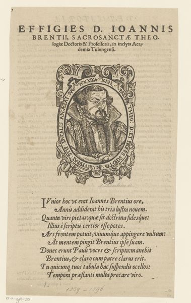 Curator: This engraving, “Portret van Cornelius Jansenius en portret van Jean Duvergier de Hauranne,” created between 1642 and 1704 by Guillaume Vallet, presents a diptych of sorts, wouldn’t you agree? Editor: Yes, I think so. The portraits feel formal, almost severe, set against those dense inscriptions, and create quite an intriguing, but quite solemn impression overall. What strikes you most about the piece, though? Curator: I see this print as a fascinating artifact reflecting the religious and political tensions of its time. Jansenius and Duvergier were key figures in the Jansenist movement, a Catholic theological movement that challenged the authority of the Church and emphasized individual conscience. How does the juxtaposition of these two figures strike you? Editor: It does invite reflection. It's interesting that the piece would highlight them both on the same page. The inscriptions underneath their portraits might reveal even more, if they were translated. But what does it mean to have both men portrayed side-by-side like this? Curator: Consider it a form of visual activism, a way to solidify their shared commitment to a specific ideology and ensure their legacy was remembered and potentially canonized. The engraving immortalizes their intellectual and spiritual kinship, providing a message about theological belief, perhaps resistance against established power structures within the church. Does understanding this context change how you perceive the work? Editor: Absolutely. The engraving now reads as a statement— a unified front, despite their individual identities. Thank you for clarifying those complexities. I hadn’t really considered all the nuances of how their belief system comes through just by looking at them both together! Curator: And understanding the historical context enriches the visual narrative. It pushes us to think about who controlled the means of art production at the time, and who had the most to gain, or lose.