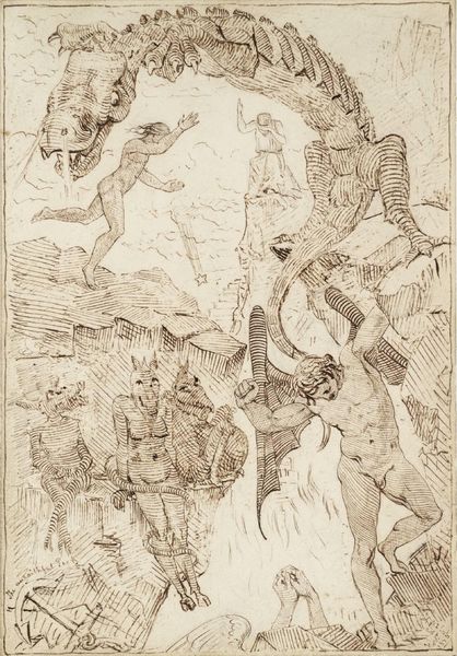This drawing of a Sasanian rock relief was created by Lutf-'Ali Shirazi. Executed with ink on paper, it depicts Shapur I and members of his court at Naqsh-i Radjab, southern Iran. The composition is neatly structured into horizontal registers. On the right, Shapur I, distinguished by his elaborate crown and majestic beard, sits astride his horse. To the left stand members of his court, their figures rendered with precise contour lines. Note how Shirazi’s use of line emphasizes the textures of clothing and hair, providing a tactile quality. This drawing operates as a semiotic system, where each element is a signifier. For example, the king's elevated position on horseback and his grand adornments are visual cues denoting power. The careful arrangement of figures and the attention to detail reflect the Sasanian court's emphasis on order and hierarchy. These elements, combined with the linear precision, reveal the drawing as more than just a visual record, functioning instead as a statement on rulership, and courtly life.