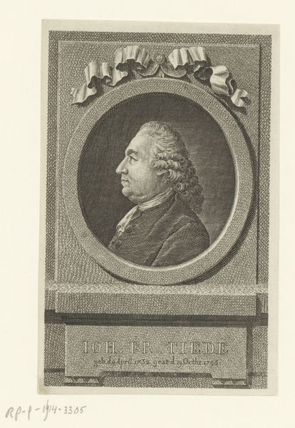Johann Elias Haid created this print of Christian Gottfried Hennig, a merchant from Gera, Germany, sometime in the late 18th century. The print, a mezzotint, presents Hennig's likeness framed in an oval, set above a plaque detailing his name and profession. Prints like these served a crucial role in solidifying social status and maintaining networks of power. Portraiture, even in printed form, was a tool for the rising merchant class to emulate the visual language of the aristocracy. The inclusion of Hennig's coat of arms below his image further emphasizes his aspirations to social prominence. Haid's print invites us to consider the evolving relationship between art and commerce in 18th-century Germany. Researching genealogical records and local histories of Gera can reveal the extent of Hennig's influence and the impact of his merchant activities on the region. Ultimately, this print is a window into the social ambitions of a man and the society that shaped him.