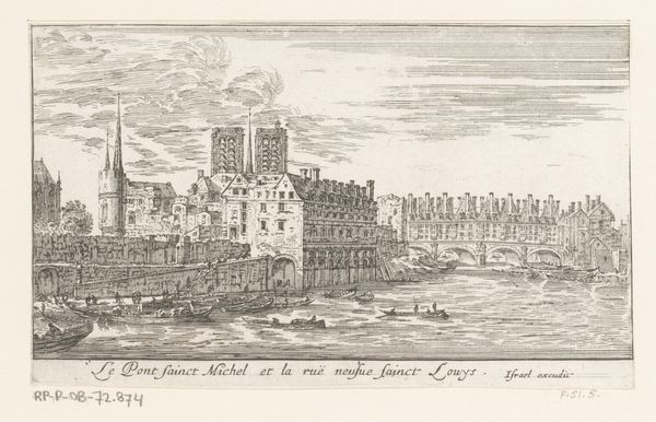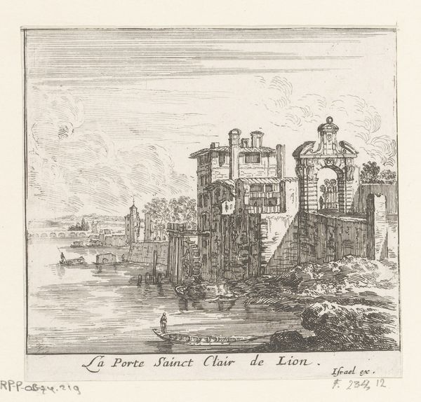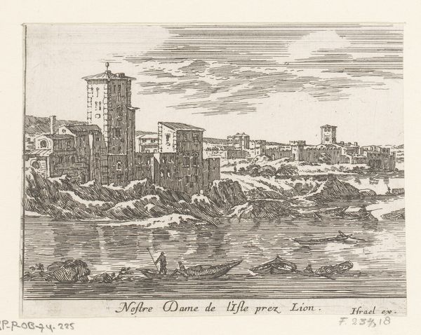 Israel Silvestre made this print of Lyon Cathedral using etching, sometime in the 17th century. The image is a network of fine lines, dug into a copper plate with acid, then inked and pressed onto paper. Look closely, and you'll see that it's not just a straightforward depiction. Silvestre has played with perspective, compressing the space between the cathedral and the surrounding buildings. This gives the image a dense, almost claustrophobic feel, reflective of urban life at the time. Note also the figures in the foreground; they provide a sense of scale, but also remind us of the human activity that animates the city. Silvestre was part of a generation of printmakers who turned the built environment into a commodity. Prints like this were sold to a wide audience, fueling a growing interest in travel and urban life. So, while the etching process is relatively simple, the image speaks to a complex web of social and economic forces.