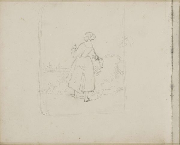 Philipp Rumpf created this pencil drawing titled 'Reading woman in the outdoors.' The composition centers on a seated woman, framed by dense foliage, suggesting a quiet moment of contemplation. The gray paper and delicate lines lend a sense of understated beauty to the scene. Light and shadow play across the figure and landscape, creating a textured surface that invites closer inspection. The drawing destabilizes traditional notions of portraiture. The focus is not on the woman’s identity but on her immersion in the act of reading. In semiotic terms, the book functions as a signifier of knowledge, leisure, and perhaps escape. Rumpf uses the natural setting to explore the interplay between the individual and their environment, blurring the boundaries between figure and ground. The subtle gradations of tone and the intricate network of lines reveal Rumpf’s engagement with the formal qualities of drawing. It is an invitation to reflect on the act of reading and the spaces, both physical and mental, that it can open up.