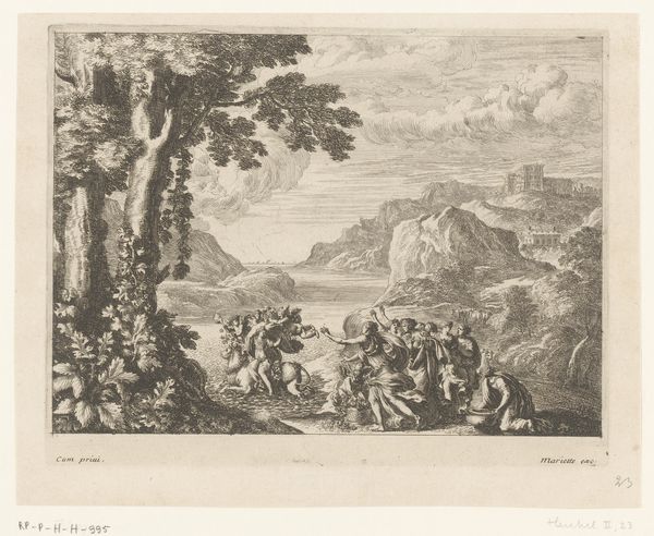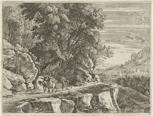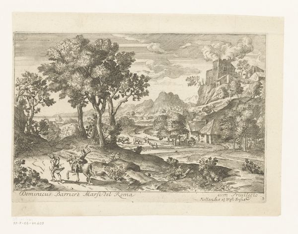 This landscape scene, populated with travelers, mules, merchants, and nuns, was etched by Matthäus Merian the Elder in the 17th century. The image captures a world in motion, a society on the move for trade, spiritual seeking, or perhaps, simply survival. The presence of both religious figures and merchants invites us to consider the intersection of faith and commerce in the early modern period. The artist's detailed rendering of each figure raises questions about their respective roles and status within this society. Are the nuns portrayed as pious pilgrims, or are they also implicated in the economic exchanges of the time? How do we interpret the presence of laborers carrying goods? Merian’s work reflects the era’s complex relationship with nature, portraying it not just as a backdrop, but as an active participant in human affairs, shaping destinies and dictating the terms of travel and trade. Ultimately, the artwork offers a glimpse into the lives of ordinary people, highlighting the diverse experiences that shaped the cultural landscape of the 17th century.
