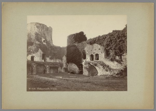 Editor: This is a photograph titled "Ruïne van het Kasteel van Coucy," possibly taken between 1902 and 1908. The landscape style photograph renders the ruins of a medieval castle. I’m struck by the weight of time embedded in the crumbling stone. What stories do you think these ruins whisper? Curator: Precisely! The image speaks to a poignant cultural memory. The ruin itself is a powerful symbol – of faded glory, of time’s relentless march. Notice how the photographer captured the ivy, the overgrowth. It speaks of nature reclaiming what was once human-made. It creates a very complex, and very romantic symbolism of both resilience and decay. Editor: That's an interesting perspective. Is there a historical context that shapes your understanding of this symbolism? Curator: Absolutely. Castles, especially in ruins, are rife with socio-political narratives. Coucy was known as a seat of immense power. In viewing ruins such as these, we grapple with power’s fragility, with civilizations and families lost to time. It’s an intensely symbolic representation of mortality, not just for individuals, but for entire ways of life. Editor: The high contrast seems intentional. Curator: Indeed, the artist likely intended the shadows to invoke not just nostalgia, but the more difficult elements of our human past. Editor: I see what you mean. I initially focused on the romantic aesthetic, but understanding the layers of historical context really changes the emotional weight. Thanks for opening my eyes to it! Curator: My pleasure. It’s the layered reading of visual cues that bring cultural and historical art to life.