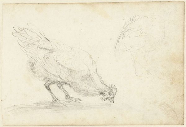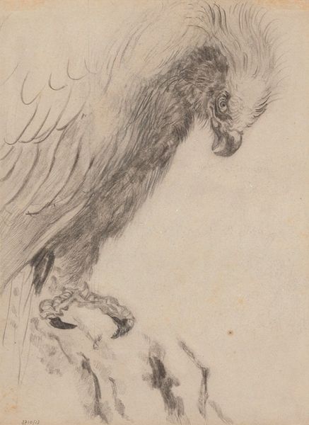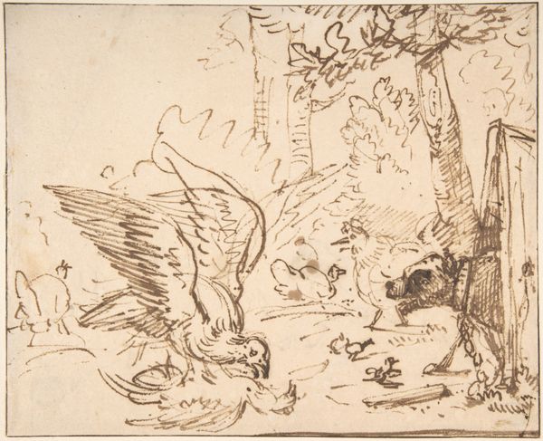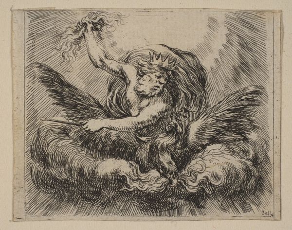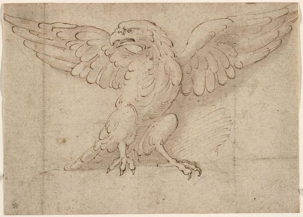 Editor: Here we have Sophia Blesendorf's "The Rape of Ganymede" from 1694, a drawing in pencil. It’s a delicate reddish hue, showing the mythological scene of Ganymede being carried away by Zeus as an eagle. The landscape seems to fade into the background almost dreamlike. What do you see in this piece, beyond the obvious narrative? Curator: Beyond the immediate representation of a classical myth, I’m struck by Blesendorf's choice of materials and technique. Why render such a dramatic subject—'the rape,' or abduction, of Ganymede—in a medium as seemingly fragile as pencil on paper? What does that say about how she, and perhaps her contemporaries, viewed the power dynamics inherent in such narratives? Was it a commentary of the laborious nature of depicting mythical figures, referencing old masters while utilizing relatively accessible media? Editor: That’s a compelling point about the fragility. It’s not oil paint and canvas; it's a print. Was this intended for mass production, therefore domestic display rather than grand gallery? Curator: Exactly. Prints were much more accessible objects. Looking at it this way reframes the work; not just as a display of artistic skill, but as a commodity for a growing art market. Blesendorf's choice might be about reaching a broader audience, challenging notions of "high art" confined to the elite. Do you see her engaging with consumer culture in some way? Editor: Yes, I do. Thinking about it now, using an allegorical scene, reproduced en masse makes me wonder if there’s any societal criticism about production values that can be inferred. Curator: Precisely! The scale of production and dissemination impacts how it's understood. Is it then about a material engagement or accessibility? What has caught your eye, in this production of material, after this conversation? Editor: It highlights that Blesendorf wasn’t just passively retelling a myth, but was actively participating in—and perhaps commenting on—the material conditions of art making and consumption of the era. Curator: Indeed. It forces us to look beyond the surface narrative and delve into the social and economic context of its creation, and her place within the field of craft as an artist.