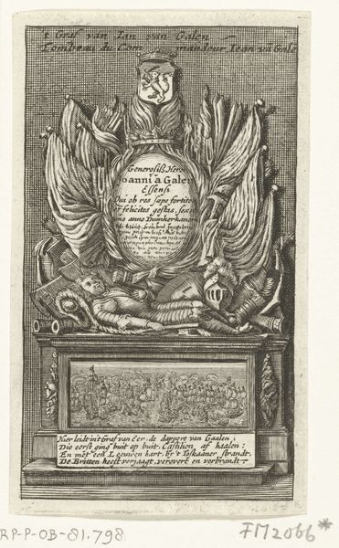 Editor: Here we have an engraving from 1586 titled "Cartouche met twee engelen en twee vogels", meaning "Cartouche with two angels and two birds" by an anonymous artist. It’s so intricate! What strikes me is how this ornamental design surrounds text… like the words themselves are precious. What can you tell me about this piece? Curator: Indeed, it's a fascinating convergence of text and image, reflecting the Renaissance preoccupation with classical forms. Cartouches themselves are ancient devices, originally used by the Egyptians, where a symbolic oval enclosed royal names, an act of conferring power. Here, two angels hold open what appears to be the seal of a trade agreement and below is a reference to Abraham Ortelius, a cartographer. How might these symbols communicate ideas of authority and knowledge? Editor: I see what you mean. The angels certainly add a heavenly authority, guarding knowledge. Are the birds significant? Curator: The birds perched next to the angels seem eagle-like, a Roman emblem, often used to represent the divine or imperial power. What do you observe about the Latin script contained within the frame? Editor: That makes sense! It seems so deliberate, enclosed and highlighted within these symbols of importance and protection. I never really considered how a decorative frame could have its own kind of voice. Curator: Exactly. It is not just about containing the words; it is also a potent declaration of power. Hopefully, we can now see more in such forms.