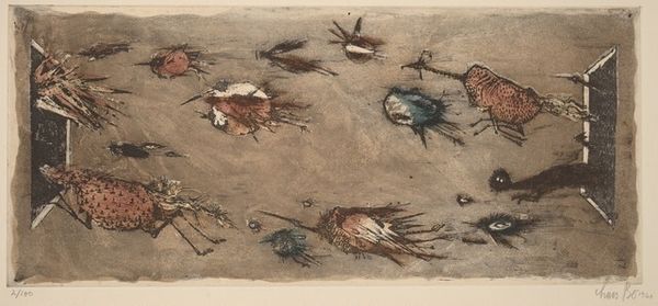Mathias Beitler made this blackwork design for goldsmiths in the early 17th century, likely in Germany, using pen and ink. The image presents a seemingly random assortment of creatures - a monkey, birds, insects – scattered across a small rectangular space. These images were pattern templates that goldsmiths used to decorate precious objects. But the images chosen are not neutral. Monkeys, for instance, often appear in early modern art to signify foolishness or mockery. Likewise, insects and bats are traditionally symbols of the wild or untamed. The act of extracting these creatures and placing them on gold objects raises questions. What does it mean to bring the wild into refined spaces? Is it a celebration of nature's bounty or a subtle commentary on the futility of trying to contain it? To understand this, we can look at emblem books and bestiaries, popular during that period, which ascribed symbolic meanings to animals. The image, and the act of its creation, can tell us much about the cultural values of the time.