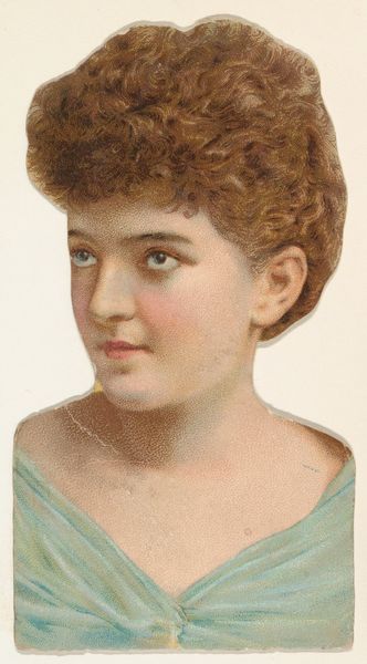 Editor: So, this delightful print is called "Actress wearing hat decorated with daisies" made around 1892-93 by W. Duke, Sons & Co. It feels so…charming! The flowers and her sweet expression are just so lovely. How would you interpret this work? Curator: It whispers of a bygone era, doesn't it? An era obsessed with beauty, theatre, and the burgeoning consumer culture. Duke wasn't just selling tobacco; they were selling dreams. The daisies are a clue - a nod to innocence and natural beauty, all carefully constructed for a performer. What does that juxtaposition make you consider? Editor: It's a manufactured image... the flowers are almost too perfect. There's an artificiality about it, maybe suggesting the constructed nature of fame? Curator: Precisely! This image is a trade card, a tiny portal into Victorian aspirations. It promises an alluring world. Think about what honest "Long Cut Tobacco" has to do with a blooming actress and fresh flowers! Isn't the association quite…deliciously absurd? Editor: I guess it is! The link is kind of nonsensical. But I see now that it isn’t necessarily about literal meaning, but about selling an idea. Curator: Bingo. Each card, a little daydream. Each purchase of tobacco, a fleeting escape. The delicate drawing is at once beautiful and utilitarian, artistic and transactional, it holds so many interesting contradictions! Now, doesn't that leave you pondering the layers beneath its pretty surface? Editor: Absolutely! I wouldn't have considered its social context so much otherwise. Thank you for broadening my horizons, that really opened my eyes to what this card is trying to communicate!