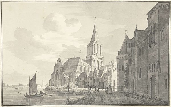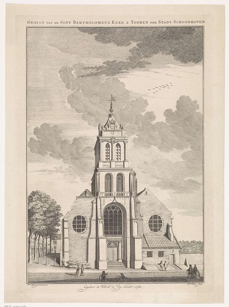 Editor: So, here we have Joost van Sassen’s “Bergkerk te Deventer,” an engraving that he worked on sometime between 1710 and 1736. It’s so precise, but also… kind of austere, would you agree? What strikes you most about this piece? Curator: Austere, perhaps... or maybe meticulously reverent? This isn't just a depiction, it’s almost an act of architectural devotion. You see, engravings of this era—often commissioned by cities or the church itself—were less about capturing a vibe and more about documenting, showcasing. I see in the almost obsessive detail not just pride, but a claim to permanence. Does that resonate with you, the idea of preserving something monumental? Editor: Absolutely, it’s like they’re freezing a moment in time. The city fathers are saying, "Look what we've built! Look how important we are!" But what about the… artist’s touch? Or is that beside the point? Curator: An excellent question! Sassen *is* there, but subtly. Note how he treats the light—not realistically, but strategically, highlighting certain architectural features, downplaying others. He isn’t a photographer striving for verisimilitude. Rather, it’s more like he's a persuasive architect of the image itself. He's selling an idea, not just a building, what do you think? Editor: I see what you mean! So it’s both documentation and promotion in one neat package. I guess I came in with the expectation that an artist always leaves a big stamp. It is interesting how he has done it by highlighting key architectural features of the church! Curator: Exactly! We look for individuality but also see artistry in the purpose behind the presentation. Always ask "why". That's what breathes life into art!
