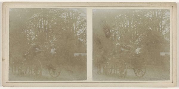 Robert Julius Boers captured this stereograph of staff officers en route in Batavia, now Jakarta, using a camera and a sepia-toned process. The image, a delicate dance of light and shadow, feels like a faded memory. Looking closely, the sepia tones create a dreamy, almost ethereal quality. It’s not just the color, but the texture, the way the light catches on the surface, that draws you in. There's a softness to the details, almost as though time itself has blurred the edges, obscuring definition. It feels like a snapshot of a time long past, with the staff officers in carriages surrounded by locals, and the towering trees overhead. This piece reminds me of early photography and its pursuit of capturing reality, of preserving a fleeting moment in time. It’s a quiet contemplation on history and how we perceive it, a reminder that art, in all its forms, is an ongoing conversation across generations.