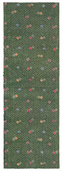 This sheet with an overall geometric pattern of striped circles and squares comes to us from an anonymous artist. Its origins and intended function are not well documented, leaving room for speculation. The pattern seems to be reaching for something, perhaps a logo or brand, and certainly a sense of order. The circles, reminiscent of coins, sit atop a grid of green squares. Are these colors and shapes meant to evoke a sense of nature tamed by industrialization, or a commentary on the commodification of everyday life? Without a known author, our reading shifts. We are left to consider the universal themes of identity, order, and value. This design offers a glimpse into the visual culture, where the push for branding and recognition was already taking shape, subtly influencing our perceptions and desires.