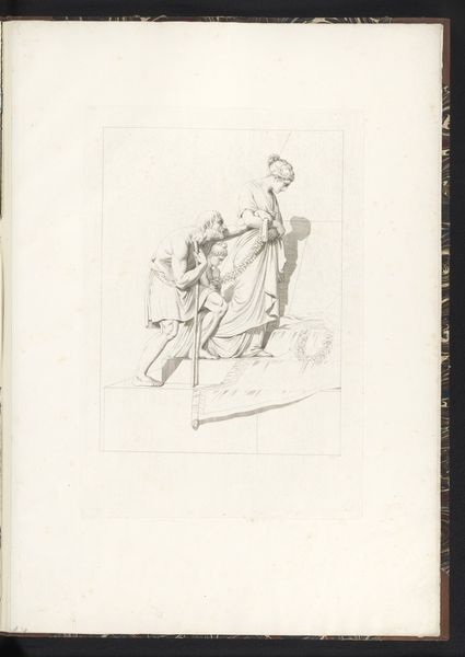 Melchior Küsel created this print, Kindermoord te Bethlehem, using etching, a process involving acid, metal, and immense skill. The stark contrast achieved through etching lends a dramatic quality to the scene. The artist would have coated a metal plate with a waxy, acid-resistant substance, then scratched an image into the wax, exposing the metal. After, the plate was submerged in acid, which bit into the exposed lines. This was an exacting process, and the depth of the lines directly influenced the amount of ink they held. Küsel would then have applied ink to the plate and wiped the surface clean, leaving ink only in the etched lines. Finally, the plate was pressed onto paper, transferring the image. The labor-intensive nature of etching meant prints like these were relatively precious. The technique allowed for the distribution of imagery to a wider audience, but also encouraged careful handling and appreciation.