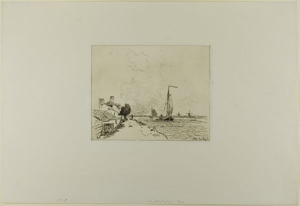 Editor: So, here we have "Canal Boats and Tugs," an etching by Charles Adams Platt from around the 19th century. The details are amazing, it is such a precise print. It seems like a very industrialized scene, almost like a photograph capturing a moment. What is your read on this etching? Curator: The image speaks to the immense transformations spurred by industrial capitalism. Focus on the steam billowing from the tugs—that smoke symbolizes progress and energy, but also a profound alteration of the natural world, and an increased dependance on fossil fuels. Editor: Definitely! All those vessels seem so packed together! Curator: Exactly. Platt presents a tightly-knit network. The etching medium, with its reproducible nature, mirrors the efficiency and mass production of the era. Look at the marks that are suggestive of human labour. Editor: So, the medium of etching itself reflects industrial processes. Curator: Precisely. Consider too, the implied consumer demands driving this canal traffic, as this piece provides insight into the material flows and supply chains of the period. What do you think of the role that these working class jobs in these industrial sectors plays in the grand scheme of things? Editor: That's fascinating! I never really thought about it like that, thinking about materials, production and labor instead of purely focusing on subject matter. Curator: Right? Looking at the materiality can show so much about production, labor and the economic forces that are at play. Editor: Well, thank you for opening my eyes to all of that! Curator: Absolutely! These pieces can speak volumes when we look at how they were made.