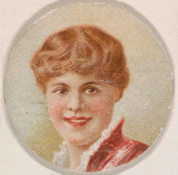 Editor: So this is the "Portrait of woman, from the Novelties series (N228, Type 1) issued by Kinney Bros," created in 1889. It looks like a small drawing or print. It has this almost idealized image of femininity typical of that time, right? I wonder, how would you interpret this work within its historical context? Curator: It's interesting to consider this portrait within the context of late 19th-century advertising and visual culture. These novelty cards were distributed with tobacco products, functioning as both advertisement and collectible item. The representation of women on these cards served to promote both the product and a specific image of feminine beauty. This card idealizes the subject through its coloring, pose and, likely, careful retouching or rendering, appealing to a certain socio-economic status. Does it strike you as subversive, in any way? Editor: Subversive? Not really, at least not on the surface. It's quite conventional. It seems aimed at upholding standards rather than challenging them. Curator: Exactly. So, instead, what do you think about its intended audience? Consider the implications of circulating such images widely. Kinney Brothers, and companies like them, weren't just selling tobacco; they were also disseminating very specific notions of beauty, status, and desire. Editor: So it is the perfect illustration of that Gaze thing, how visual media helps to build this understanding of social standards… Curator: Precisely. The power lies in how these images help solidify and standardize the popular ideals of beauty and class—influencing everything from fashion to social etiquette of the time. And even our view today. What would a comparable item or image look like in present times, do you think? Editor: That's really fascinating. I never considered how powerful these small, mass-produced images could be in shaping societal norms. Thanks! Curator: My pleasure! Considering the public role of art and the politics of imagery offers insights into the society.