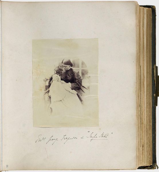 Editor: This is an untitled photograph by Mary Georgiana Caroline Cecil Filmer. It features a woman, a child with a rifle, and a dog. There is a feeling of formality but also something unsettling. What can you tell me about it? Curator: The image resonates with societal roles and power dynamics, doesn't it? Consider the child, posed with a rifle. What does that symbolize in the context of Victorian England and its colonial ambitions? Editor: It's a jarring juxtaposition, childhood and weaponry. It makes you wonder about the expectations placed on young boys at that time. Curator: Exactly. And the woman's hand resting on the child's shoulder, signifying ownership or guidance? These constructed poses reflected and reinforced societal hierarchies. We must think about the photograph's creation and its cultural implications. Editor: I see it differently now, it's not just a portrait; it's a statement about gender, class, and power. Curator: Precisely. By examining these layers, we gain a richer understanding of the photograph’s historical and cultural significance.