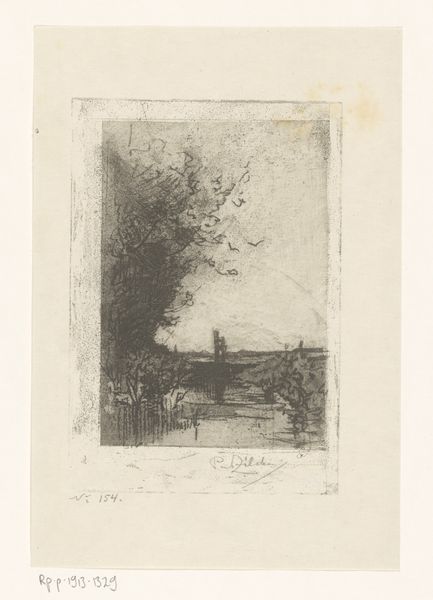 Editor: We’re looking at "Clouds Over a Rolling Landscape," a pencil drawing from 1921 by Simon Moulijn, housed here at the Rijksmuseum. The sky really dominates; it feels so heavy, pressing down on the land. What do you make of this work? Curator: It's interesting how Moulijn uses such a humble medium, pencil, to capture the grandeur of nature. Consider the period: the early 20th century, a time of immense social and political change in the Netherlands and across Europe. How do you see that reflected, if at all, in this seemingly tranquil landscape? Editor: I guess, compared to a lot of modernist art from that period, it feels quite traditional? Maybe that’s a deliberate choice to show stability amid all that change? Curator: Precisely. Moulijn’s choice to depict a serene landscape could be interpreted as a desire to return to traditional values and a sense of rootedness in the face of rapid modernization and social upheaval. Think about the role of landscape art throughout history - it’s not just about pretty scenery. Editor: So, it's not *just* a landscape, but a statement? I hadn't really thought about landscapes being political, exactly. Curator: Not overtly, perhaps, but the choice of subject, the style, and even the medium all contribute to its meaning within the cultural context of its time. Who controlled and accessed this kind of imagery then, and what was their goal? Editor: Wow, that's a lot to think about. It makes me look at this simple drawing in a whole new light. Curator: Indeed. It highlights how even seemingly straightforward works can be deeply intertwined with the social and political landscape of their time. Editor: Definitely something I'll be keeping in mind going forward. Thanks!