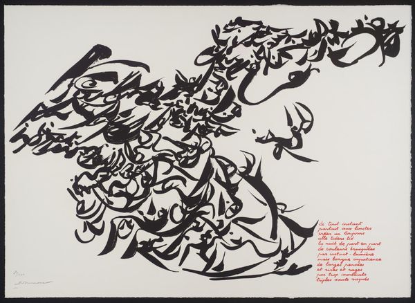 Ulfert Wilke made this Calligraphy with ink, sometime in his career. It's all about the gesture, I think. The way the ink sits on the page, thick and bold, like a confident signature. Look at the upper part of the image, these decisive strokes, they're not just lines; they're pathways, aren't they? The ink is opaque, unforgiving, each mark a testament to the artist's hand. It’s kind of immediate, like the artist didn't think twice, just went for it. You can almost feel the rhythm of the brush. Wilke's work reminds me a little of Cy Twombly, in the sense that it captures these fleeting moments, but also, there is a sense of the eternal, as if the work has always been there. Isn’t art just an echo of each other, anyway? Wilke doesn't offer us all the answers, and I kind of like that.