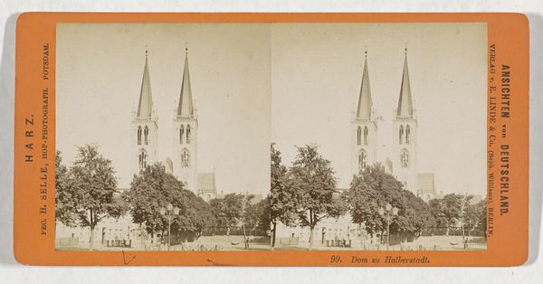 Editor: So, here we have Hermann Selle's photograph, "Onze-Lieve-Vrouwenkerk in Halberstadt," taken sometime between 1868 and 1890. It's a striking cityscape; the church feels both imposing and serene, viewed through the screen of trees. What do you see when you look at this piece? Curator: Beyond the obvious architectural subject, I see a powerful statement about the relationship between religious institutions and secular power during the late 19th century. The framing of the church – partially obscured by the trees, yet still dominant in the landscape – speaks to a tension. Editor: Tension? Could you elaborate? Curator: Consider the historical context. This photograph was taken during the rise of German nationalism and a period of secularization. How might the photographer be positioning the church – and by extension, religion – within this shifting societal landscape? Is Selle critiquing or celebrating? The formal elements offer clues, but we must consider the social undercurrents to fully understand the message. Does the Church support nationalism? Is nationalism superseding religion as an ideology? Editor: I hadn’t thought about it that way. I was so focused on the aesthetics that I missed the potential commentary on society and politics. Curator: Exactly! This image offers us a lens to explore the complex interplay between faith, power, and national identity during a pivotal era in European history. Photography was new at the time: what possibilities did that open for commenting on identity, or politics? Editor: So much to think about! It's amazing how one image can hold so many layers of meaning when viewed through a critical and historical lens. Curator: Precisely. And that's the beauty of engaging with art – it's a constant process of questioning, contextualizing, and reinterpreting. We see history through the object.