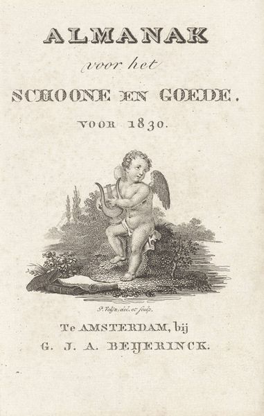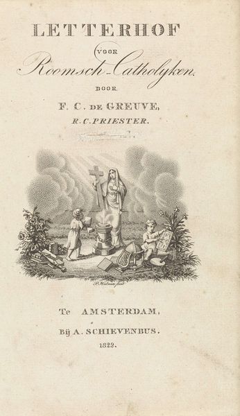 Editor: This print, "Mother with child by a Bible on a pillar in a landscape", dating back to 1824 and residing in the Rijksmuseum, is quite intriguing. I'm initially struck by the deliberate juxtaposition of domestic intimacy with grand historical symbolism. What’s your take on its meaning? Curator: Well, let's consider its function as an almanac illustration. These weren't merely decorative; they subtly reinforced societal norms. The mother and child next to the Bible-topped pillar present an idealized vision of domesticity and faith, suggesting these values form the very bedrock of society. Do you think this image reflects the role of women at the time? Editor: Absolutely. The mother guides the child, literally and figuratively, towards religious instruction, mirroring the expected nurturing and moral education roles of women in the 19th century. Curator: Precisely! The romanticized landscape enhances this, framing domestic piety as being naturally aligned with an idealized, pastoral existence. What could be read from this seemingly idyllic depiction that makes you question what this image is presenting? Editor: Hmmm. While it seems straightforward, perhaps it also obscures the lived realities of women. The romanticism might gloss over socio-economic disparities and the pressures placed on women to embody these ideals. Curator: Good point. These images propagated a specific vision, one that often excluded diverse experiences. The pillar itself, typically a symbol of power or knowledge, becomes domesticated here. It's quite interesting how social and historical pressures shaped that narrative. Editor: It’s fascinating to consider the broader context and see how a seemingly simple image participates in larger social conversations! Thank you, I understand so much more about this now. Curator: You're welcome! These prints really underscore how artistic choices always intersect with broader socio-political currents.